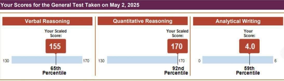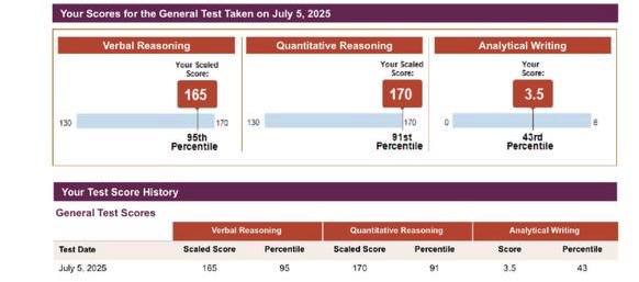 نمره: Verbal 160, Quant 165, AWA 4.5