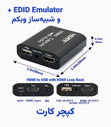 کارت کپچر HDMI به USB با قابلیت EDID Emulator و شبیهساز وبکم